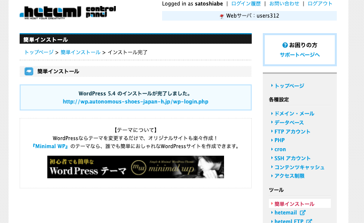 もしくは、あまりケースは少ないかもしれませんが、ヘテムルで予め割り振られて与えられる、初期ドメインでもWordpressサイト制作は可能ではあります。