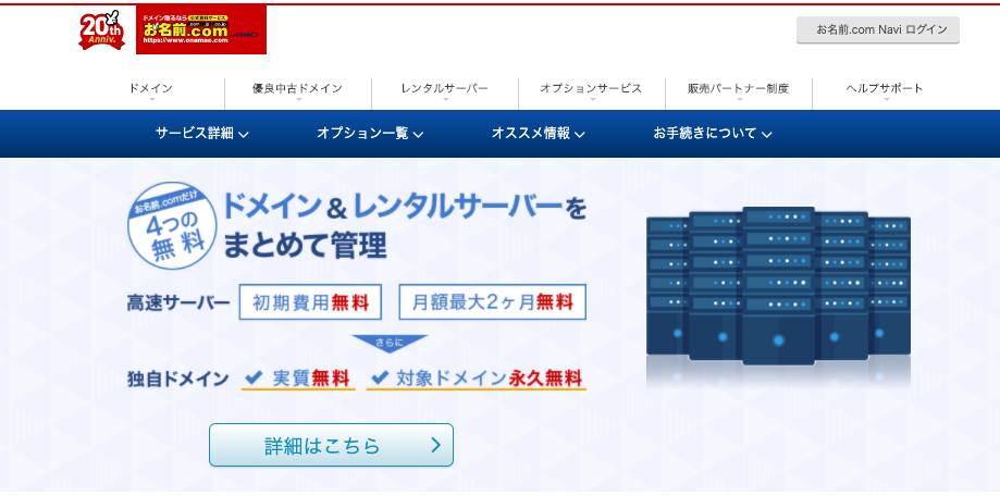 ドメイン取得サービスとして非常に有名な「お名前ドットコム」は、レンタルサーバーの利用も提供しています。