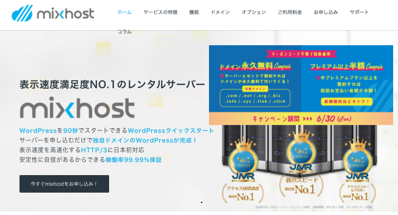 | 5位 | mixhost | 1,518円 | 250GB | 4.5TB/月 | B(88%) | ||||||