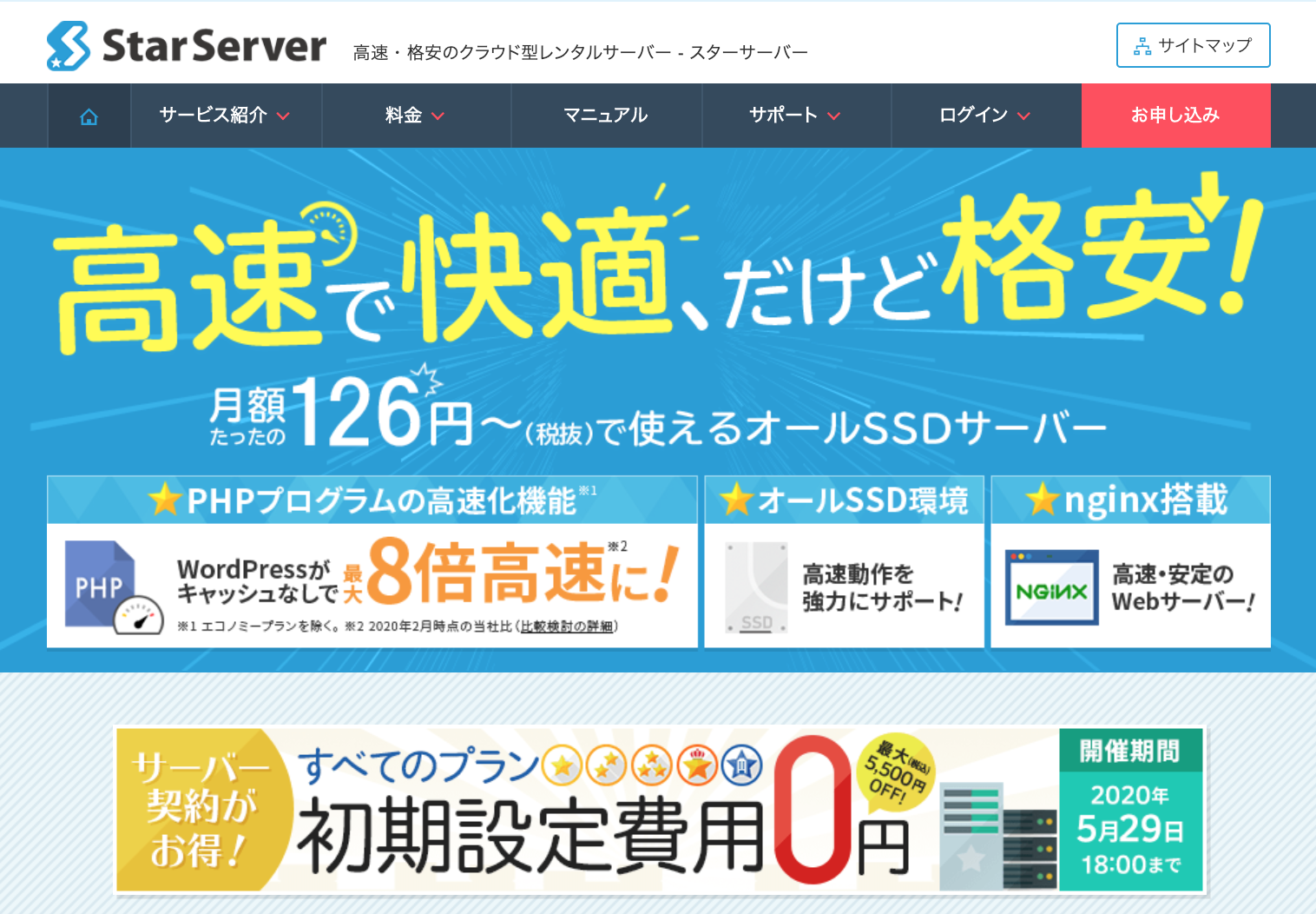「高安定レンタルサーバー」と謳うように、99.99%以上の高い稼働率を維持し、同社調査で国内サーバーで速度No.1で、パフォーマンスも良いです。