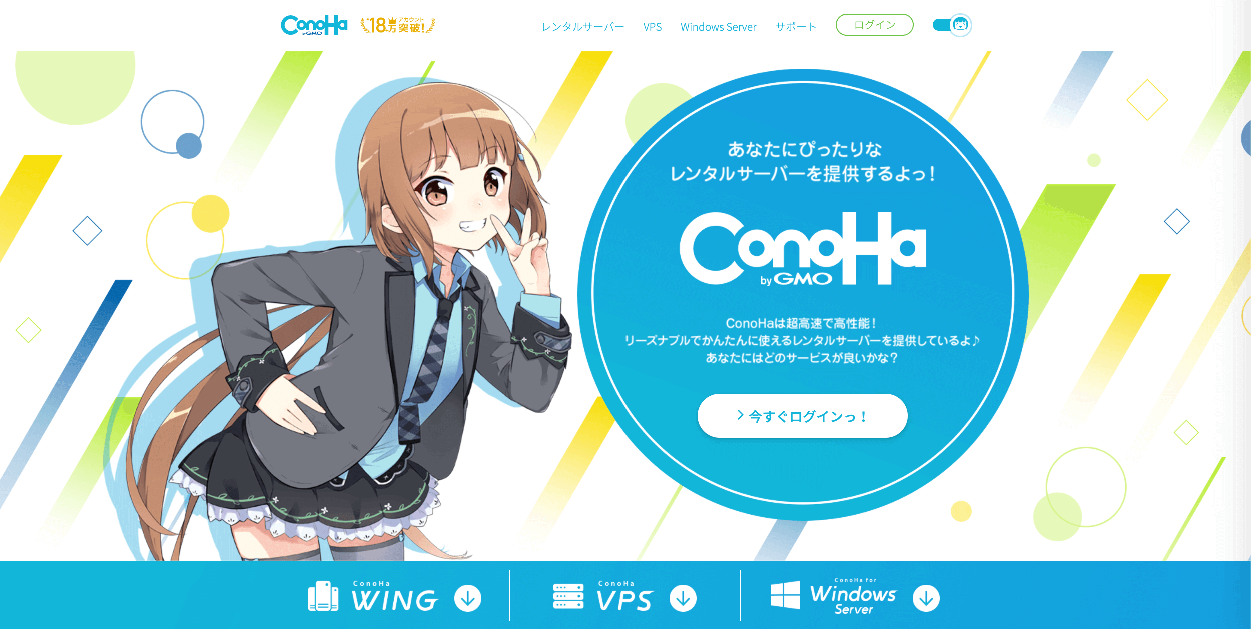 “国内最速”を謳っている、大手GMOインターネットが展開する「ConoHa(コノハ)」のレンタルサーバーは、18万以上のユーザーに使われ、導入実績も多数紹介されており、話題性も大きいサービスです。