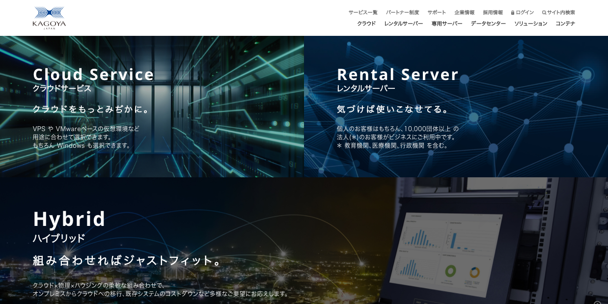 20年以上の長い歴史があり、各種レンタルサーバー・インフラサービスを提供するカゴヤ・ジャパン。